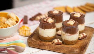 Uwielbiamy tworzyć desery bez pieczenia w słoiczkach, bo już od samego patrzenia można natychmiast zgłodnieć. Nie inaczej jest w przypadku naszego przepisu dnia na warstwowe słodkości inspirowane batonikami Kinder Bueno. Chcesz dowiedzieć się więcej? Koniecznie obejrzyj wideo z instrukcją krok po kroku. Listę składników standardowo publikujemy poniżej.