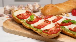 Chrupiąca bagietka, pesto domowej roboty, soczysty pomidor i kultowa mozzarella. Wszystko to znajdziesz w naszym przepisie dnia na trójkolorową bruschettę. Wystarczy dosłownie jeden kęs, aby zakochać się w niej na całe życie. Instrukcję krok po kroku znajdziesz w wideo. Listę składników publikujemy poniżej.