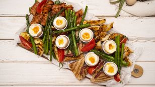 Jeśli myślisz, że śniadanie to najnudniejszy posiłek w ciągu dnia, pomysł na deskę pełną różnych kąsków powstał właśnie z myślą o tobie. Znajdziesz tu całą masę smacznych elementów, które razem tworzą prawdziwą ucztę dla podniebienia. Będzie ciekawie, oryginalnie i na bogato. Każdy po takim śniadaniu na pewno odejdzie od stołu najedzony. Dokładną instrukcję przygotowania naszego przepisu dnia znajdziesz w wideo. Lista składników czeka poniżej.