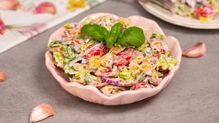 Nie masz czasu na długie gotowanie? Zrób ekspresową sałatkę makaronową w chrupiącym wydaniu z naszego przepisu dnia. Nietypową, ale jednocześnie pyszną bazę połącz z kolorowymi warzywami i szybkim sosem. I tyle wystarczy, aby przygotować prawdziwą ucztę dla podniebienia. Dokładną instrukcję znajdziesz w wideo, natomiast listę produktów publikujemy poniżej.