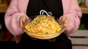 Podaj kalafiora w ten sposób, a cała rodzina będzie pod wielkim wrażeniem. Smaczne warzywo upieczone w całości idealnie komponuje się z aksamitnym sosem na bazie cheddara. Jak dokładnie przygotować taki obiad? Obejrzyj nasze wideo, a wszystko stanie się jasne. Lista składników czeka poniżej.